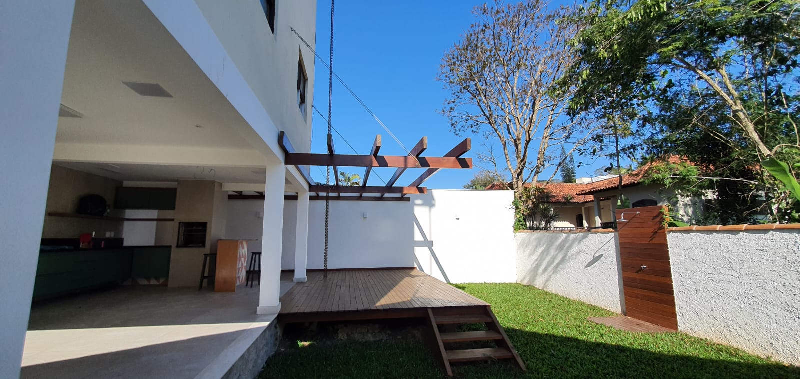 Para este projeto foi desenvolvido um pergolado e um deck feito em madeira, que foi pensado para tornar o espaço da casa mais moderno, aconchegante e elegante.